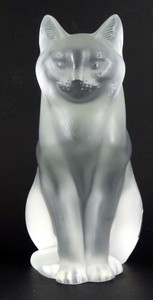 52 - LALIQUE 'CHAT ASSIS' CRYSTAL CAT SCULPTURE Lalique French frosted crystal sculpture in the form of a cat sitting. Titled 'Chat Assis'. Signed and holds original labels to underside. Measures 8 1/4" (20.9cm) height.