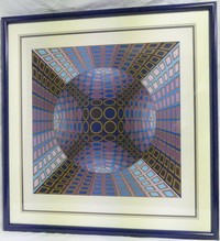 14 - VICTOR VASARELY OPTICAL ART SERIGRAPH Victor Vasarely (French/Hungarian, 1906-1997) optical art serigraph. Pencil signed lower right and numbered 134/250 lower left. Measures 29 1/2" (74.8cm) x 28" (71cm) + 3 1/2" (8.8cm) mat & frame.
