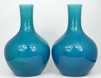 18 - PR CHINESE TURQUOISE GLAZED PORCELAIN VASES Pair of 19th century Chinese turquoise blue glazed porcelain vases. Each measures approx 11 1/2" (29cm) height.