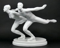 22 - HEREND BLANC DE CHINE OLYMPIC ICE SKATERS Herend Hungarian Blanc de Chine porcelain figural group depicting an Olympic ice skating couple. Marked to underside. Measures 13 1/2" (34.2cm) length x 10" (25.5cm) height.