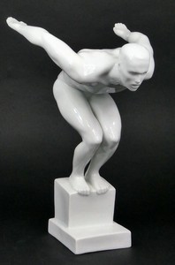 23 - HEREND BLANC DE CHINE OLYMPIC SWIMMER Herend Hungarian Blanc de Chine porcelain figure of an Olympic swimmer. Marked to underside. Measures 10 1/2" (26.5cm) height.