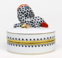 31 - HEREND ZEBRA PORCELAIN BOX Herend Hungarian porcelain covered box with recumbent zebra to cover. Marked to underside. Measures 3 1/2" (8.8cm) width.