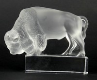 32 - LALIQUE 'BISON' FROSTED CRYSTAL PAPERWEIGHT Lalique frosted crystal paperweight in the form of a bison or buffalo. Signed to underside. Measures 5" (12.7cm) length.