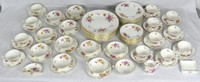 36 - 83pc ROYAL CROWN DERBY 'DERBY POSIES' CHINA SET 83 pieces of Royal Crown Derby porcelain dinnerware in the 'Derby Posies' pattern. Each piece marked to underside. Includes 11 dinner plates-10 1/2", 12 salad plates-8 1/2", 12 bread and butter plates-6 1/2", 11 teacups-4 3/8", 10 saucers-5 3/4", 11 handled cream soup bowls-6 3/8", 10 saucers-6 1/4", 3 fan trays-4 3/4", 1 rectangular dish-4", 1 creamer-3 1/2" and 1 sugar bowl 3 3/4".