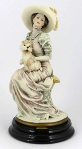 39 - GIUSEPPE ARMANI 'LOLA' FIGURINE w BOX Giuseppe Armani figure depicting a seated lady with dog. Titled 'Lola'. Signed to base and holds original labels to underside. Includes original box. Figure measures 8 1/4" (21cm) height.