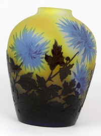 45 - EMILE GALLE 'CORNFLOWERS' CAMEO GLASS VASE Emile Galle cameo glass vase depicting cornflowers. Signed to side. Measures 6 1/2" (16.5cm) height. Purchased from Exquisite Antiques, Ltd., Bellmore, New York, 1978.