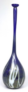 47 - STEPHEN FELLERMAN IRIDESCENT ART GLASS VASE Stephen Fellerman iridescent studio art glass vase having an elongated neck. Signed to underside and dated 1979. Measures 14 7/8" (37.8cm) height.