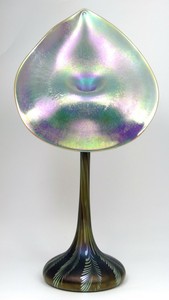 50 - CARL RADKE IRIDESCENT ART GLASS VASE Carl Radke for Phoenix Studios iridescent jack-in-the-pulpit art glass vase. Signed and holds original label to underside. Measures 16" (40.6cm) height.