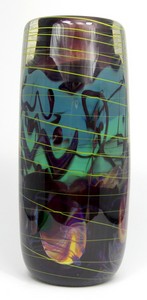 6 - MICHAEL PAVLIK MULTI-LAYERED BLOWN GLASS VASE Michael Pavlik (Czechoslovakian, born 1941) art glass vase of cylindrical form. Signed, dated 1978 and numbered 1163 along bottom edge. Measures 9 1/2" (24cm) height.