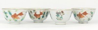 11 - 4pc CHINESE PORCELAIN TEACUPS 4 Chinese porcelain tea cups. Three decorated with goldfish and one decorated with florals. Each having gilt rim. Largest measures 2 1/2" (6.3cm) diameter.