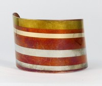 14 - TIFFANY & CO MIXED METAL CUFF Tiffany & Company rare copper cuff bracelet inlaid with silver and goldtone metal. Designed by Angela Cummings. Measures 2 5/8" (6.6cm) width.
