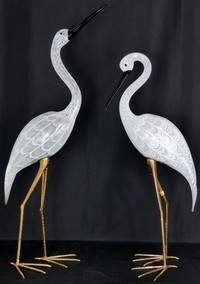 1 - PR LICIO ZANETTI MURANO ART GLASS CRANES Pair of Licio Zanetti Murano art glass and gilt metal cranes. Each signed to underside and holds original labels. Largest measures 36 1/4" (92cm) height.