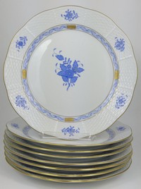 28 - 8pc HEREND CHINESE BOUQUET PORCELAIN DINNER PLATES 8 Herend porcelain dinner plates in the Chinese Bouquet Blue pattern. Each marked to underside and measures 10 1/8" (25.7cm) diameter.
