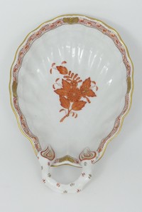 29 - HEREND CHINESE BOUQUET PORCELAIN SHELL DISH Herend porcelain shell dish with handle in the Chinese Bouquet Rust pattern. Marked to underside. Measures 7" (17.8cm) length.