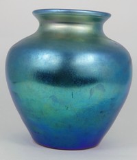 2 - STEUBEN BLUE AURENE LARGE GLASS VASE 2683 Steuben Blue Aurene iridescent art glass vase. Signed Steuben, inscribed Aurene and numbered 2683 to underside. Measures 7 3/4" (19.7cm) height and width.
