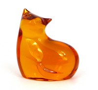 45 - BACCARAT AMBER CRYSTAL CAT PAPERWEIGHT Baccarat amber crystal paperweight in the form of a cat. Signed to side of base. Marked to underside and holds original label. Measures 2 5/8" (6.6cm) height.