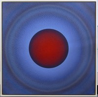 4 - TADASKY 'E-148' ACRYLIC PAINTING ON CANVAS Tadasuke Kuwayama (Japanese-American, b. 1935) acrylic painting on canvas. Titled E-148 (Textured Red and Blue). Signed, titled and dated 1969 to verso. Holds D. Wigmore Fine Art, Inc, New York label to verso. Measures 50" (127cm) x 50" (127cm)+ 1" (2.5cm) frame.