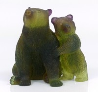 12 - DAUM PATE DE VERRE BEAR & CUB Daum Pate de Verre glass sculpture depicting a bear with her cub. Signed Daum France to underside. Measures 4" width x 3 3/4" height.