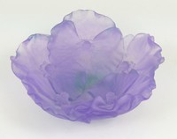 16 - DAUM PATE DE VERRE FLORAL BOWL Daum Pate de Verre amethyst glass bowl with flower decoration. Signed Daum France to underside. Measures 5" diameter.