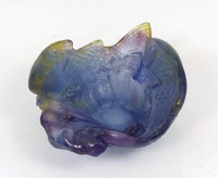 18 - DAUM PATE DE VERRE FISH DISH Daum Pate de Verre glass miniature dish decorated with two fish. Signed Daum France to underside. Measures 2 3/4" width.
