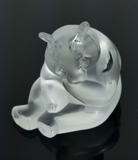 20 - LALIQUE FROSTED CRYSTAL PANDA BEAR FIGURE Lalique frosted crystal panda bear figurine. Signed Lalique France to underside. Holds original label. Measures 2 3/4" length.