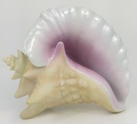 21 - HEREND PORCELAIN CONCH SHELL Herend porcelain conch shell with natural finish. Marked, numbered 15574 and signed Takacs. Measures 6" length x 5" height.
