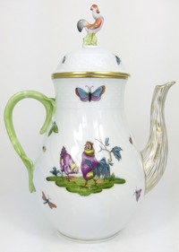 24 - HEREND 'CHANTICLEER' PORCELAIN COFFEE POT Herend porcelain coffee pot decorated with chickens and butterflies in the 'Chanticleer' pattern. Marked to underside. Measures 9 1/2" height.