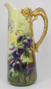 27 - WILLETS BELLEEK DRAGON HANDLED PITCHER Willets Belleek porcelain pitcher with gold gilt dragon handle and overall floral decoration. Marked to underside. Measures 11 1/4" height.