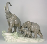 39 - LLADRO 'ELEPHANT FAMILY' PORCELAIN FIGURINE Lladro porcelain figural group depicting elephants walking #1150. Marked to underside. Measures 16" length x 14 1/4" height.