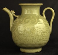 41 - CHINESE LONGQUAN CELADON PORCELAIN EWER Chinese Longquan Celadon porcelain ewer. Measures 7.5" height x 8" width.