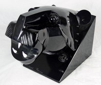 44 - LOREDANO ROSIN MURANO GLASS SCULPTURE OF CAT Loredano Rosin (Italian, 1936-1991) Murano art glass sculpture depicting the stylized head of a predatory cat. Signed to front of base and holds round Venezia, L. Rosin, Murano plaque. Measures 14" length x 10 1/4" height.