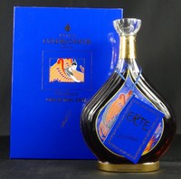 45 - ERTE 'DISTILLATION' COURVOISIER COGNAC UNOPENED Sealed Erte (Romain De Tirtoff, Russian/French, 1892-1990) Courvoisier Cognac bottle. Titled 'Distillation' #3. Edition number 2862. Includes original box and paperwork. Bottle measures 10" height. Box measures 11 1/2" x 8 1/4".