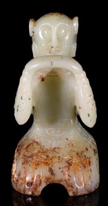 7 - CHINESE CARVED JADE SEATED FIGURE Chinese jade carving of a seated figure. Measures 4" height.