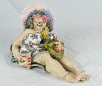 9 - D.M.Z. COYLE ORIGINAL CLAY SCULPTURE DMZ 'Ziggy' Coyle clay folk art sculpture depicting an eccentric woman enjoying a day at the beach. She's enjoying a drink while wearing large heart-shaped sunglasses, large earrings and several large rings. Signed DMZ Coyle and dated 86 to verso. Numbered to underside. Measures 11 1/2" length x 6" width x 7 1/4" height.