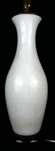 14 - CHINESE 19th C WHITE GLAZED PORCELAIN PEONY VASE 19th century Chinese white glaze porcelain vase finely decorated with peony blossoms and foliage. Porcelain vase measures 19 1/2" height. Entire lamp measures 36" overall height.
