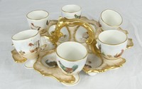 17 - 7pc LIMOGES PORCELAIN EGG SET Limoges porcelain egg set includes six porcelain egg cups and handled tray. Each piece decorated with hen and chick motif with gilt accents. Tray marked to underside. Tray measures 9" length. Cups measure 2 1/4" height.