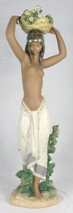 21 - LLADRO 'NATIVE' PORCELAIN FIGURINE Lladro gres porcelain figure depicting a partially nude woman balancing a basket of flowers on her head. Titled Native Odalisca #3502. Marked to underside. Measures 30" height.