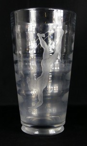 3 - VICKIE LINDSTRAND FOR ORREFORS 'PEARL DIVER' VASE Vicke Lindstrand (Swedish, 1904-1983) for Orrefors etched blown glass vase titled 'Pearl Diver'. Signed and numbered to underside. Measures 11" height.