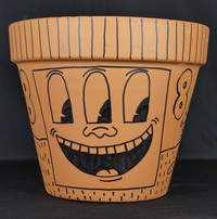 40 - KEITH HARING TERRACOTTA POT Keith Haring [attributed] black marker on terracotta flower pot. Depicts a three-eyed monster, 2 snakes and dog with ten legs and human-like head. Signed, dated 1988 and inscribed 'For Sam' to underside. Measures 14 1/4" diameter x 12" height. Condition: chip to inner rim with 6" hairline crack.