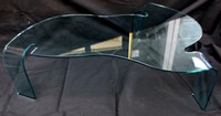45 - FIAM ITALIA FREEFORM GLASS COFFEE TABLE Fiam Italia mid-century modern bent glass coffee / cocktail table attributed to Angelo Cortesi. Marked to leg. Measures 53 1/2" x 37" x 15 3/4" height.
