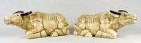 48 - PR CHINESE OX BONE COW SCULPTURES Pair of Chinese ox bone recumbent bulls. Each measures approx 12" length.