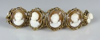 5 - 14kt YELLOW GOLD & CARVED CAMEO CHERUB BRACELET 14kt yellow gold bracelet having six carved cameos depicting portraits of cherubs. Bracelet measures 6 3/4" length x 1 5/8" height. Largest cameo measures approx 28mm x 24mm. Total weight 28.9dwt.