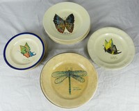 20 - 19pc WALTER SPIES HAND PAINTED PORCELAIN DISHES Walter Spies (Russian, 1895-1942) collection of 19 hand painted porcelain plates depicting various insects including butterflies, dragonflies and bees. Each inscribed with Latin name of insect and is signed and dated 1922. Plates from various manufacturers including Dutch, Japanese and German. Sizes range from 7 1/2" to 9 1/2" diameter.