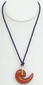 29 - ANGELA CUMMINGS FOR TIFFANY JASPER SILK NECKLACE Angela Cummings for Tiffany & Company silk necklace with swooping red jasper pendant suspended by an 18kt yellow gold ring. Marked Tiffany & Co, 18K. Jasper pendant measures 37mm. Gold hoop measures 24mm. Silk cord measures 32" length.