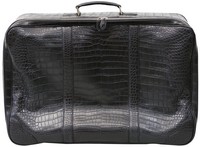 38 - BESPOKE LARGE CROCODILE LEATHER SUITCASE Bespoke large black crocodile leather suitcase. Having black matte crocodile leather, silver-tone metal hardware and protective plastic feet, zip closure. Includes protective fabric case. Measures 28 1/2" length x 21" height x 9 1/2" depth.