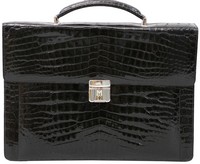 40 - MAISON CROCODILE BRIEFCASE w 14kt GOLD & DIAMONDS Maison Crocodile leather attache bag briefcase with white gold and diamonds. Having front push through fastening with diamond 'M' set in 14kt white gold.. Black suede lining. Silver tone hardware. Measures 15 3/4" length x 13 1/4" height x 2 1/8" depth.
