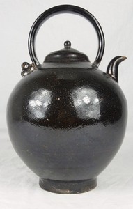 43 - CHINESE SONG DYNASTY BLACK GLAZED POT Chinese Song Dynasty black glazed water pitcher with handle, lid and spout. Measures 11 1/4" height.