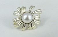 11 - TIFFANY 'ANEMONE' STERLING SILVER & MABE PEARL PIN Tiffany & Company sterling silver brooch in the form of a sea anemone with mabe pearl to center. Marked to underside and measures 1 3/4" (4.5cm) length.