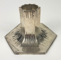 15 - LOUIS COMFORT TIFFANY STERLING CANDLE HOLDER Louis Comfort Tiffany sterling silver candlestick holder. Marked to underside. Measures 3 1/4" width x 2 1/4" height. Total weight 7.6ozt.
