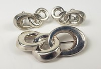 19 - 3pc TIFFANY & CO STERLING CIRCLE BROOCH & EARRINGS Tiffany & Company 3D interlocking circle suite consisting of a pair of earrings-1 3/8" length and brooch-2 1/2". Each marked to verso.